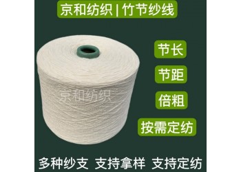竹節紗具有粗細分布不均勻的外觀,是花式紗中的一種,有粗細節狀竹節紗、疙瘩狀竹節紗、短纖維竹節紗、長絲竹節紗等。竹節紗可用于輕薄的夏季織物和厚重的冬季織物。可用于衣著織物,也可用于裝飾織物,風格別致,立體感強。