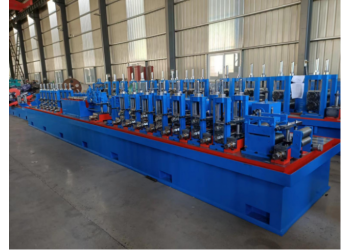 高頻焊管機是以帶鋼為原料,經開卷、成型、高頻焊接、解決焊瘤、定徑、校直、切斷等一系列制管工序制造出圓鋼管或各樣式一行鋼管的成套設備。采用輥式成型將帶鋼冷彎加工成圓坯,通過高頻感應加熱將焊縫擠壓形成圓管,在經過定徑加工生產出各樣式標準規格的圓管、方矩形管。